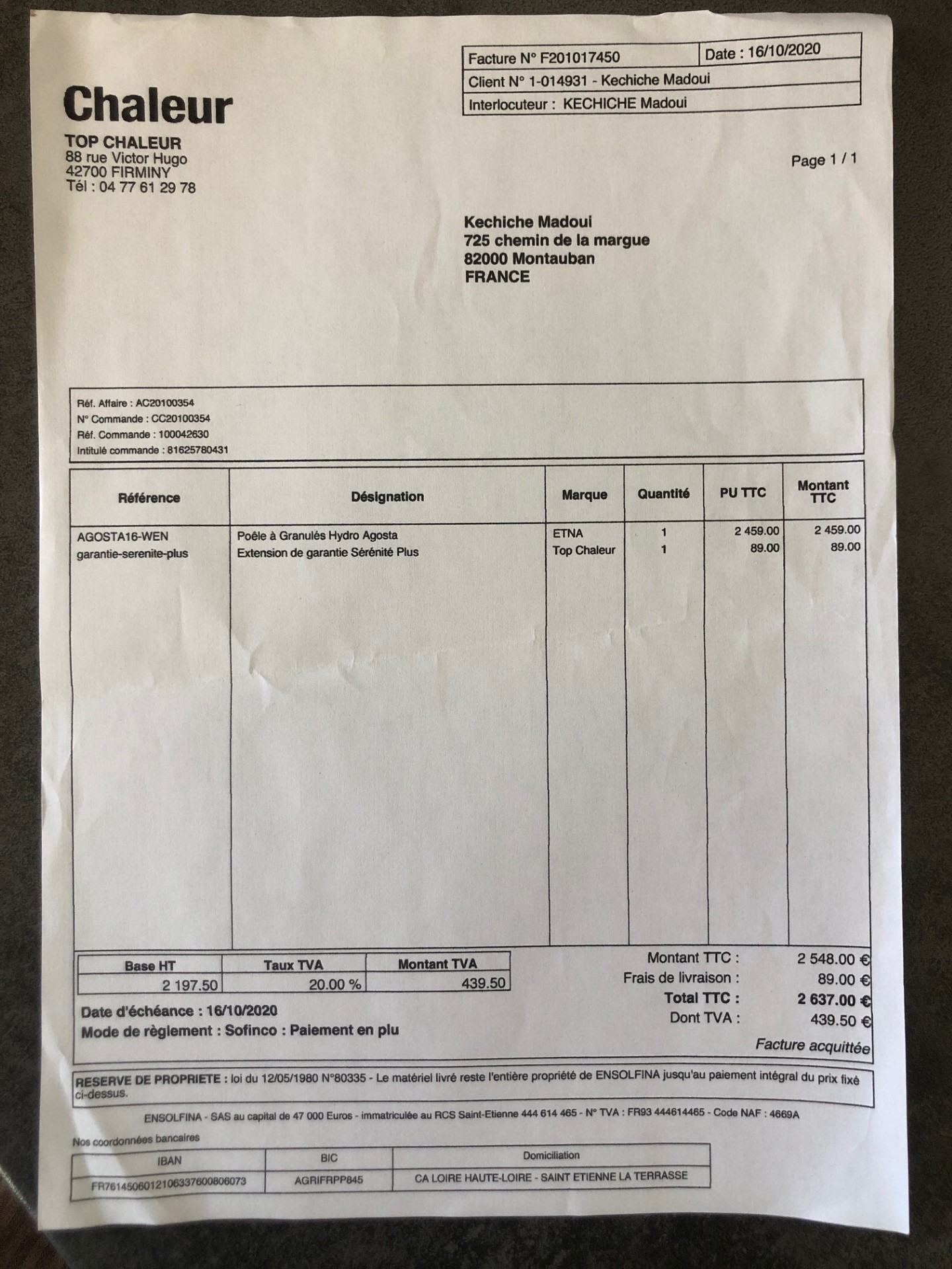 Facture d'achat