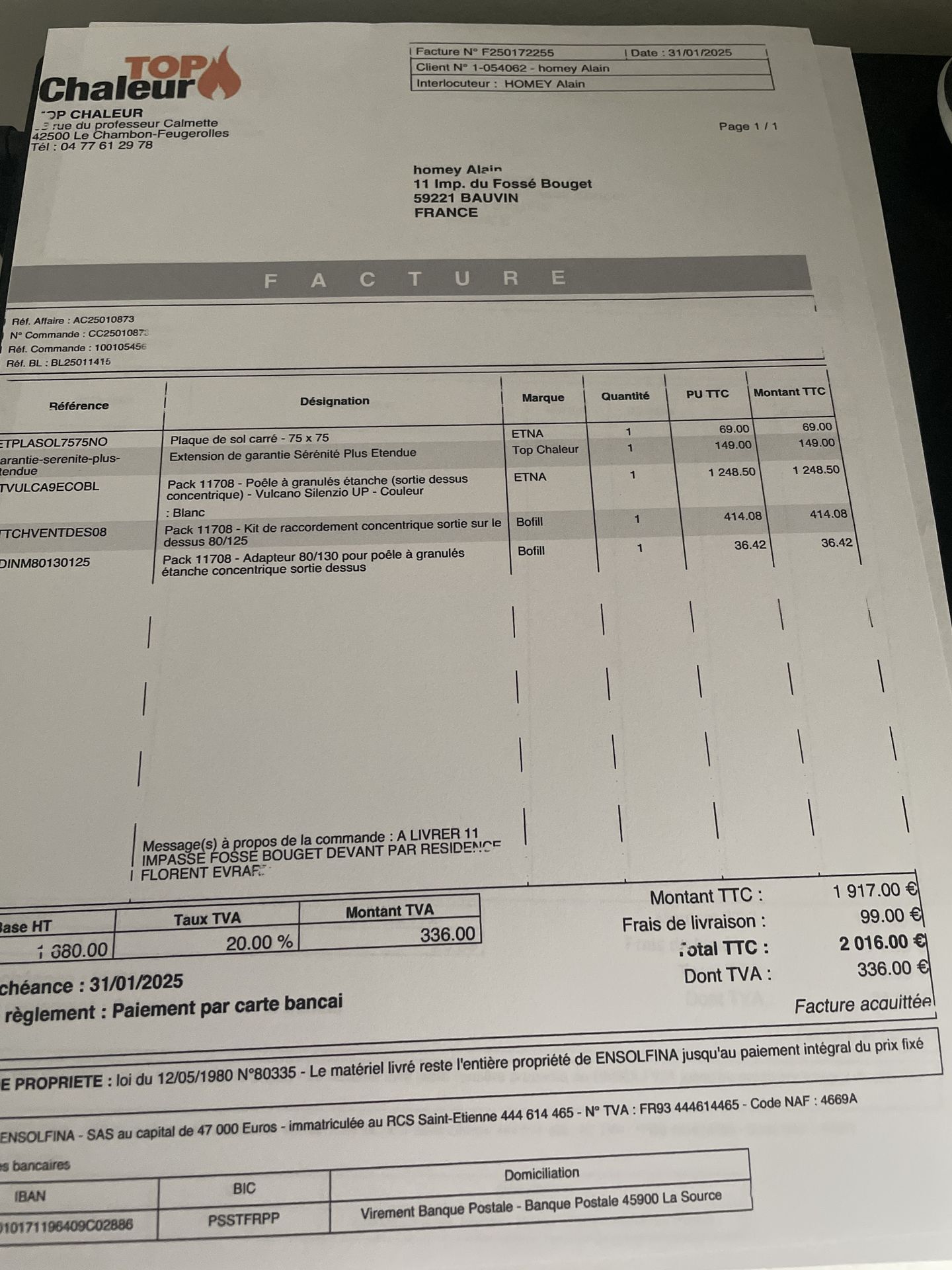 Facture d'achat